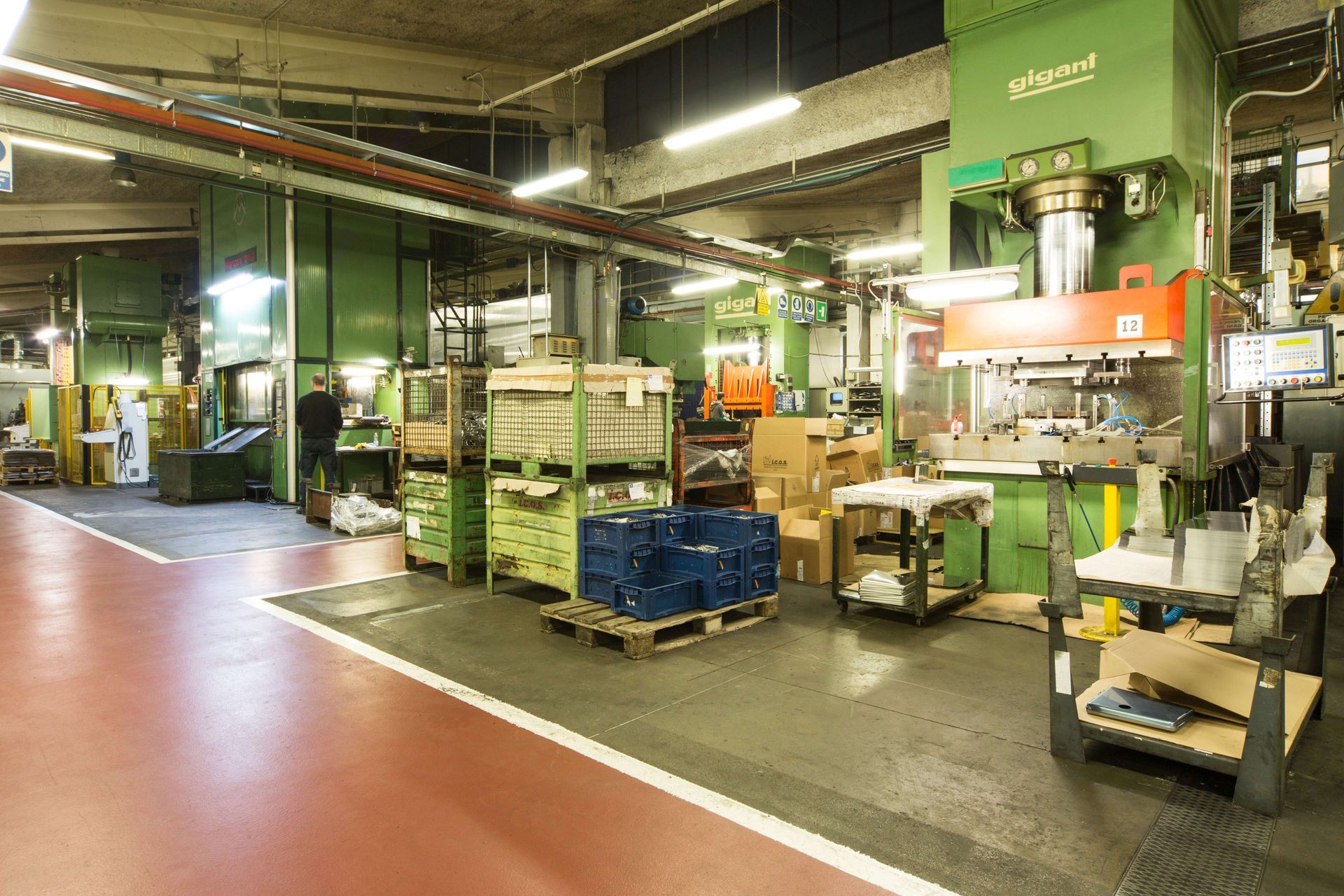Il Reparto stampaggio lamiere a Bologna è estremamente ricco di risorse: sono presenti una trentina di presse sia meccaniche che idrauliche, asservite anche con linee di produzione automatiche da nastro, con potenze che vanno dalle 50 alle 550 tonnellate e che dispongono di piani di lavoro anche di grandi dimensioni.